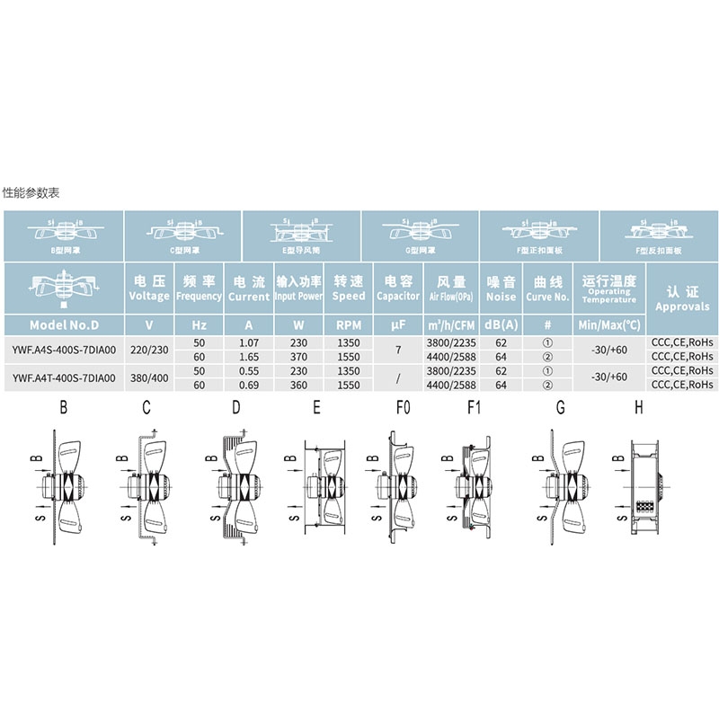 YWF.A4S-400S-7DIA00全新原裝外轉(zhuǎn)子風機馬爾微光三木