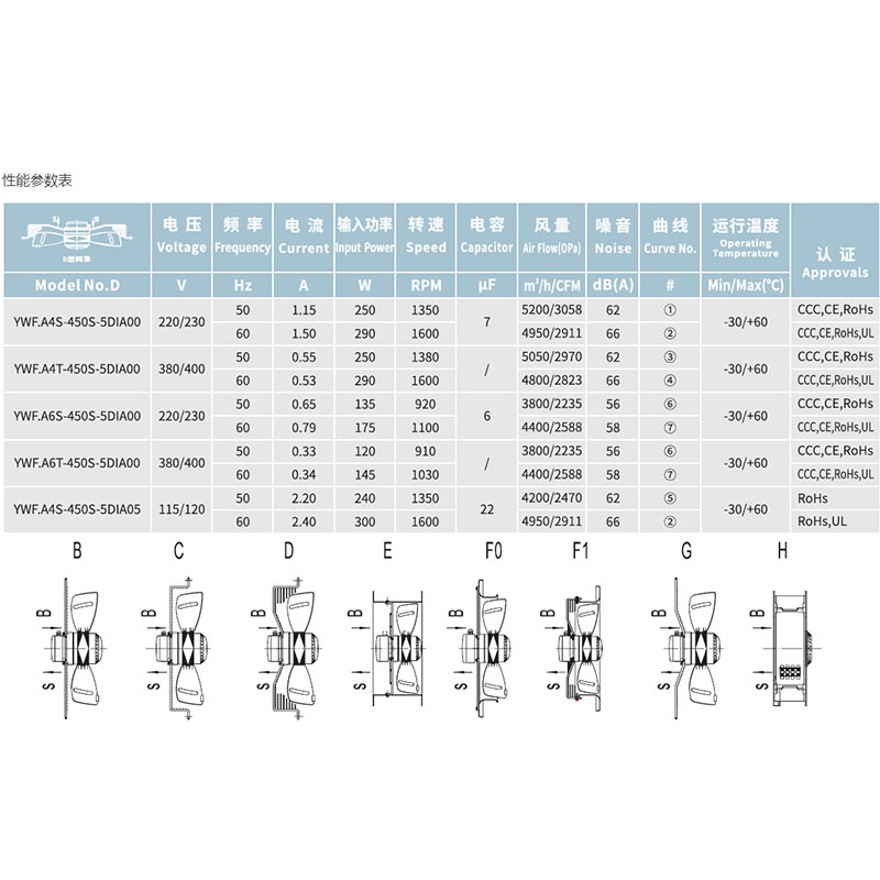 YWF.A4S-450S-5DIA00原裝三木微光馬爾外轉子軸流風機