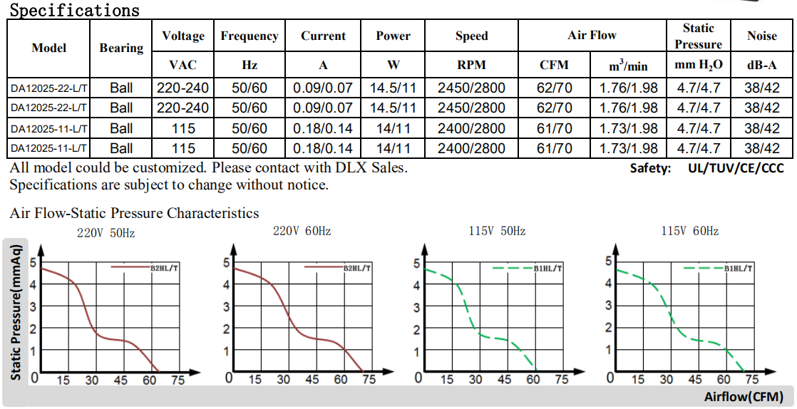120 x 120 x 25mm DA12025 115/220V廠家定制12025散熱風扇,12厘米軸流風扇可定制