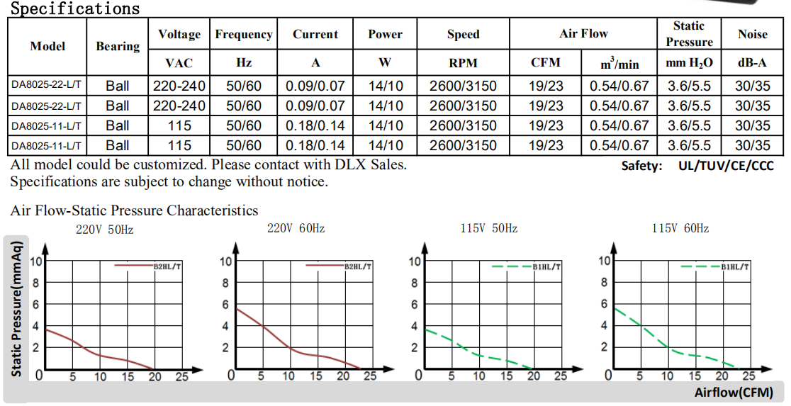 80 x80 x 25mm DA8025 115/220V 8厘米軸流風機散熱風扇