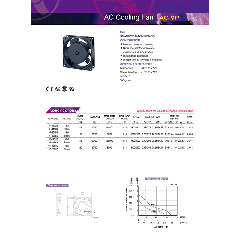 原裝臺灣百瑞工業散熱風扇AC 9P115HB 92*92*25MM加熱器散熱風扇