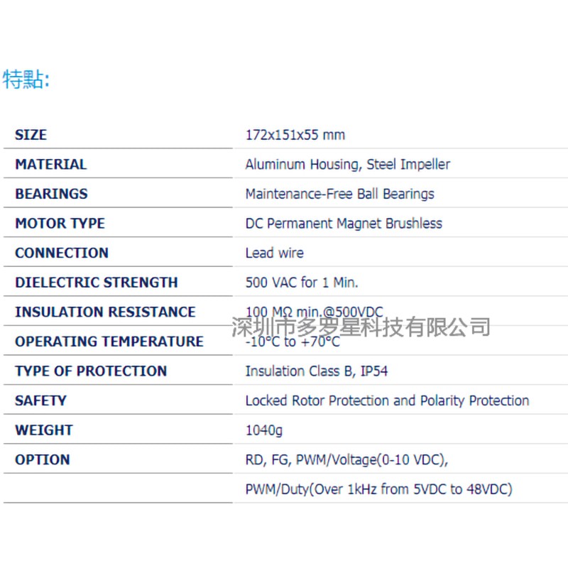 A15155-D27BLS全新原裝臺灣達盈全金屬鐵葉172*150*55引線DC風扇